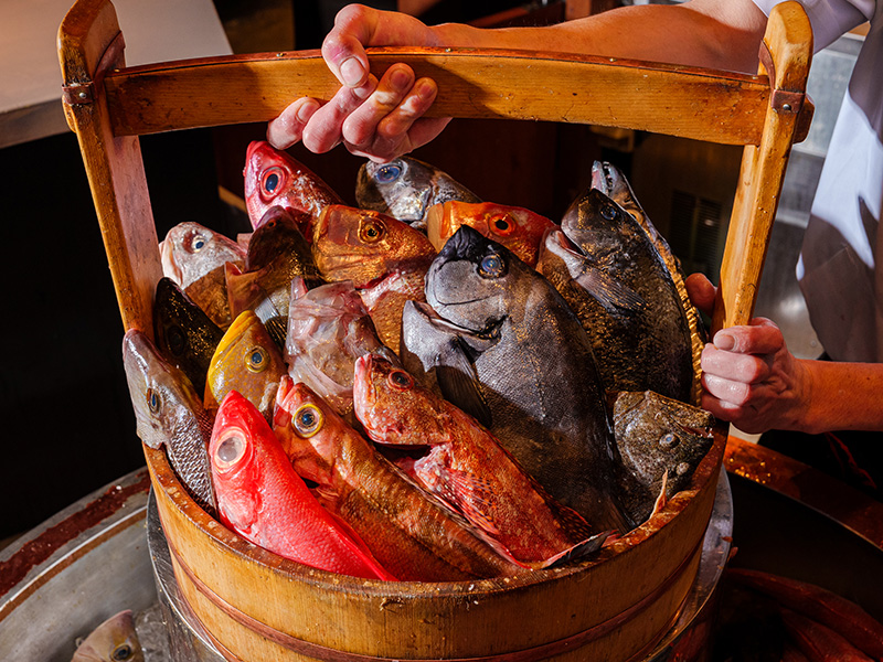 名物旨い魚を、丸ごとお席でお選びいただき、お好きな調理法でご堪能いただけます。